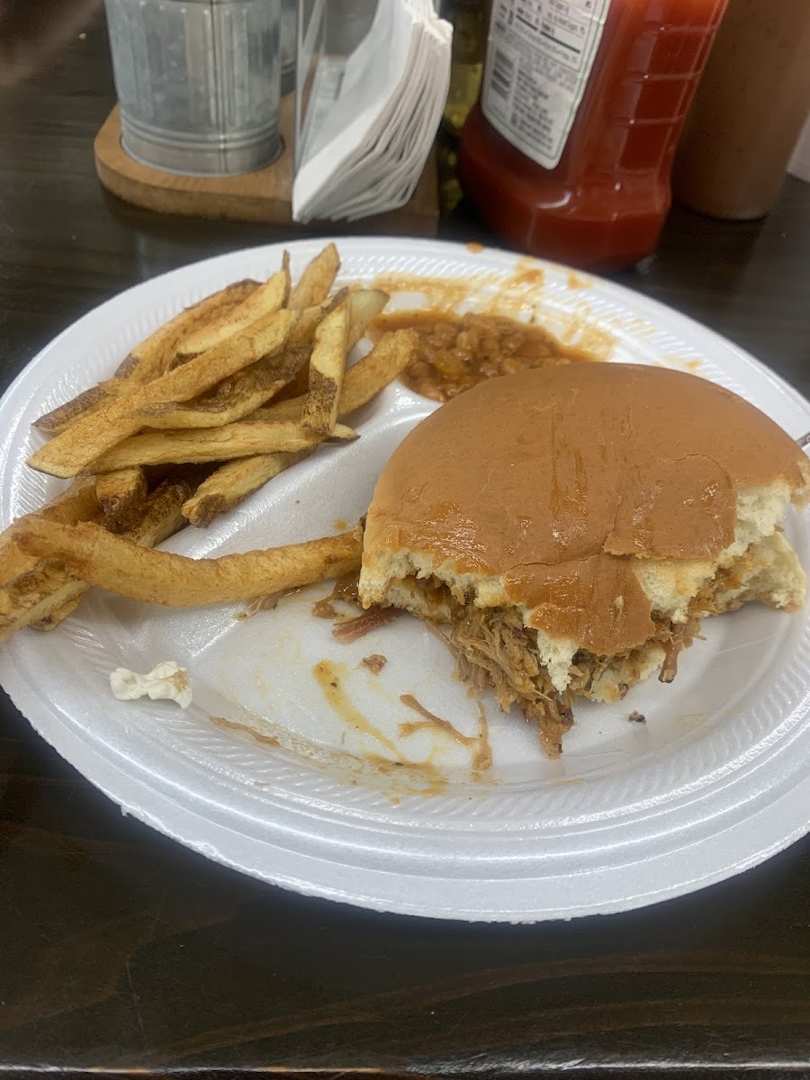 The menu keeps things straightforward, which is usually a good sign. Smoked pulled pork, ribs, chicken, and classic sides like baked beans, slaw, and potato salad dominate the board. What stands out is the consistency. Barbecue experts often point out that maintaining stable smoke temperatures between 225 and 250 degrees is key to tender meat, and you can taste that discipline here. According to data from the National Barbecue Association, low-and-slow cooking reduces moisture loss by up to 30 percent, which explains why the pork stays juicy even during busy lunch hours.